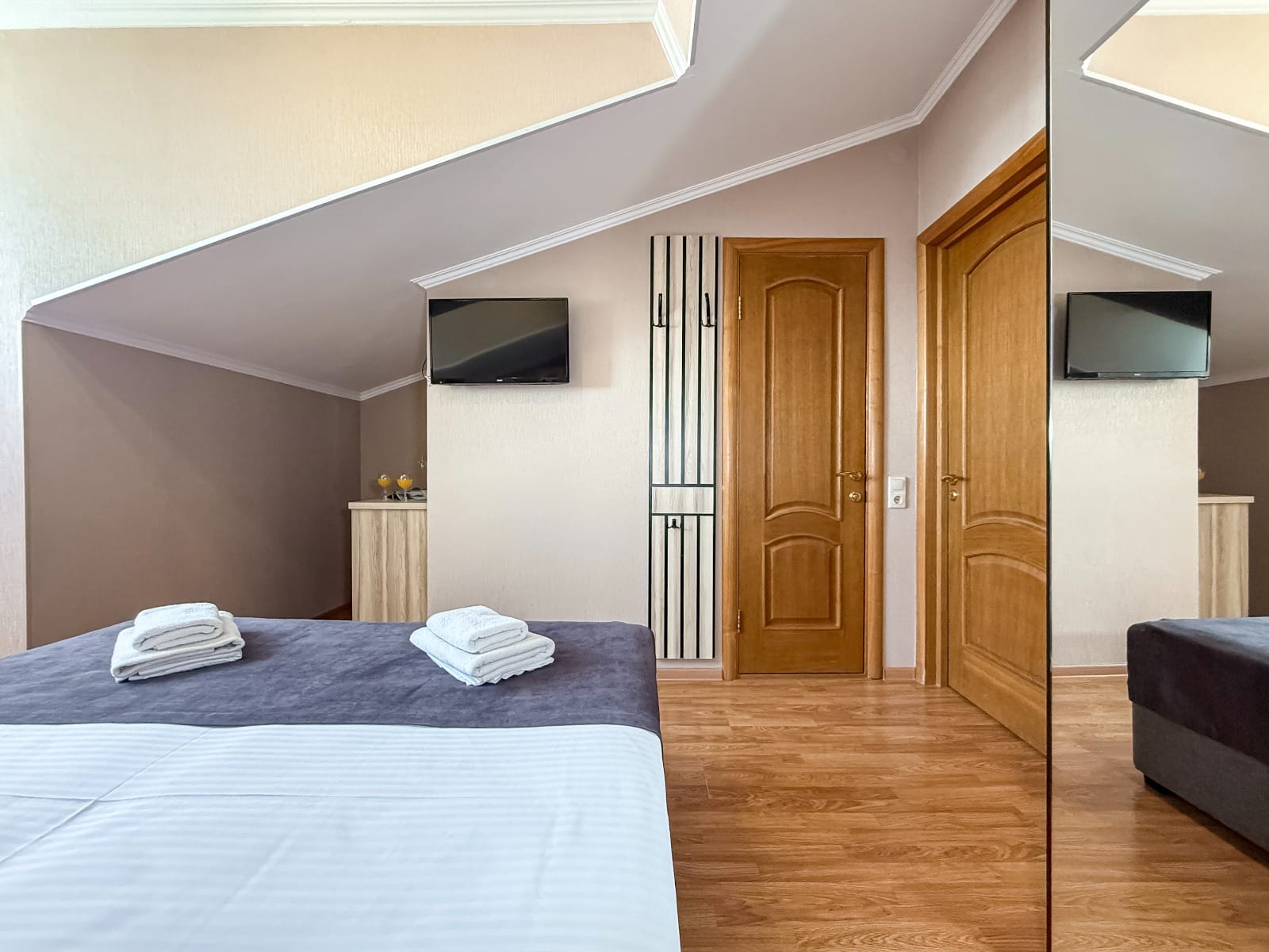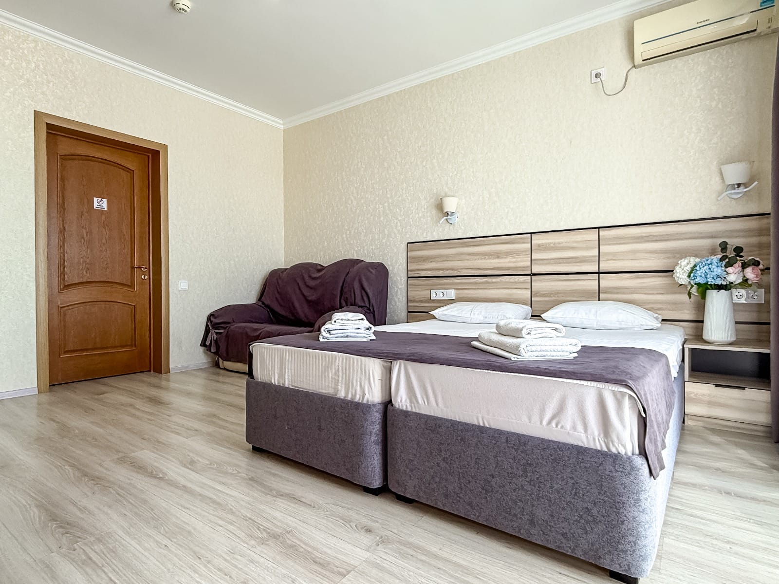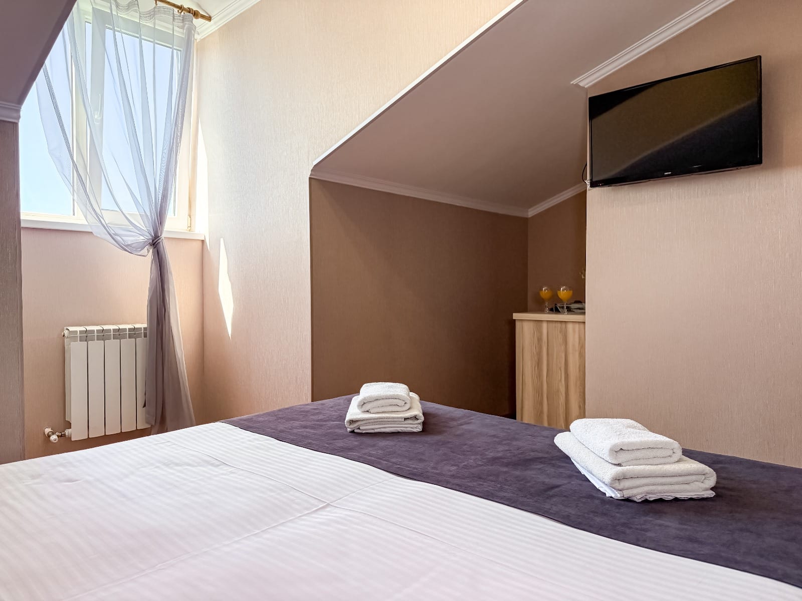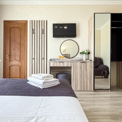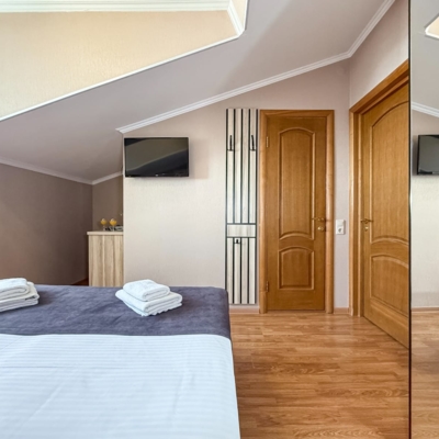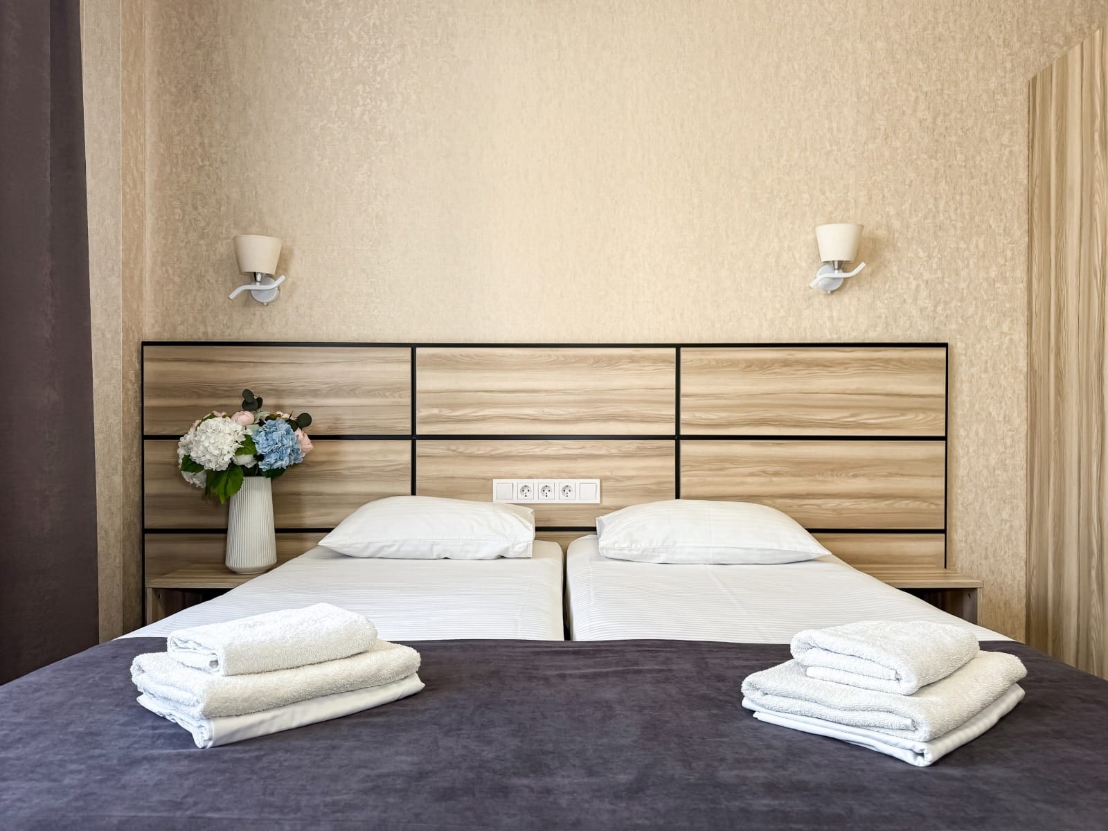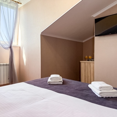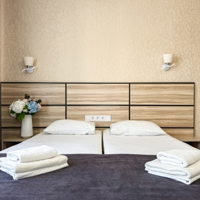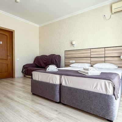 • При бронировании трёхместного номера, предоставляется размещение категории TWIN+ EXB (стандартный номер с двумя раздельными кроватями + дополнительное спальное место( возможно еврораскладушка))