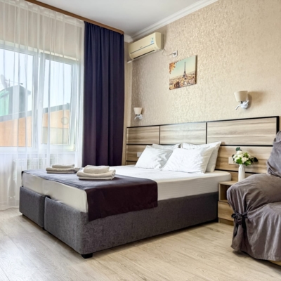 Для семей с детьми в Геленджике работают аквапарки с горками и бассейнами, дельфинарий с шоу-программами, океанариум с морскими обитателями и современные развлекательные центры с аттракционами и анимацией. Здесь легко найти занятия на любой возраст и вкус. Тур включает проезд на современном комфортабельном автобусе с кондиционером, мягкими креслами и остановками в пути, что делает поездку лёгкой и приятной. Размещение подбирается в соответствии с вашими предпочтениями — от уютных гостевых домов до гостиниц с бассейнами и питанием.